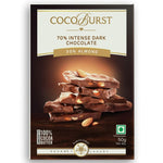 Elevate your chocolate journey with CocoBurst—a harmonious blend of 70% intense dark chocolate and the satisfying crunch of 30% premium roasted almonds. Handcrafted with 100% pure cocoa butter, this bar is a tribute to purity, luxury, and the art of chocolate-making. Free from malt, cornstarch, trans-fat, and artificial additives, every bite is indulgence at its finest.