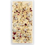Elevate your senses with the creamy luxury of CocoBurst White Chocolate, infused with the crunch of 30% roasted almonds and pistachios. Crafted with 100% pure cocoa butter, this artisanal chocolate is perfectly complemented by a subtle hint of rose petals, delivering a uniquely delightful experience with every bite.