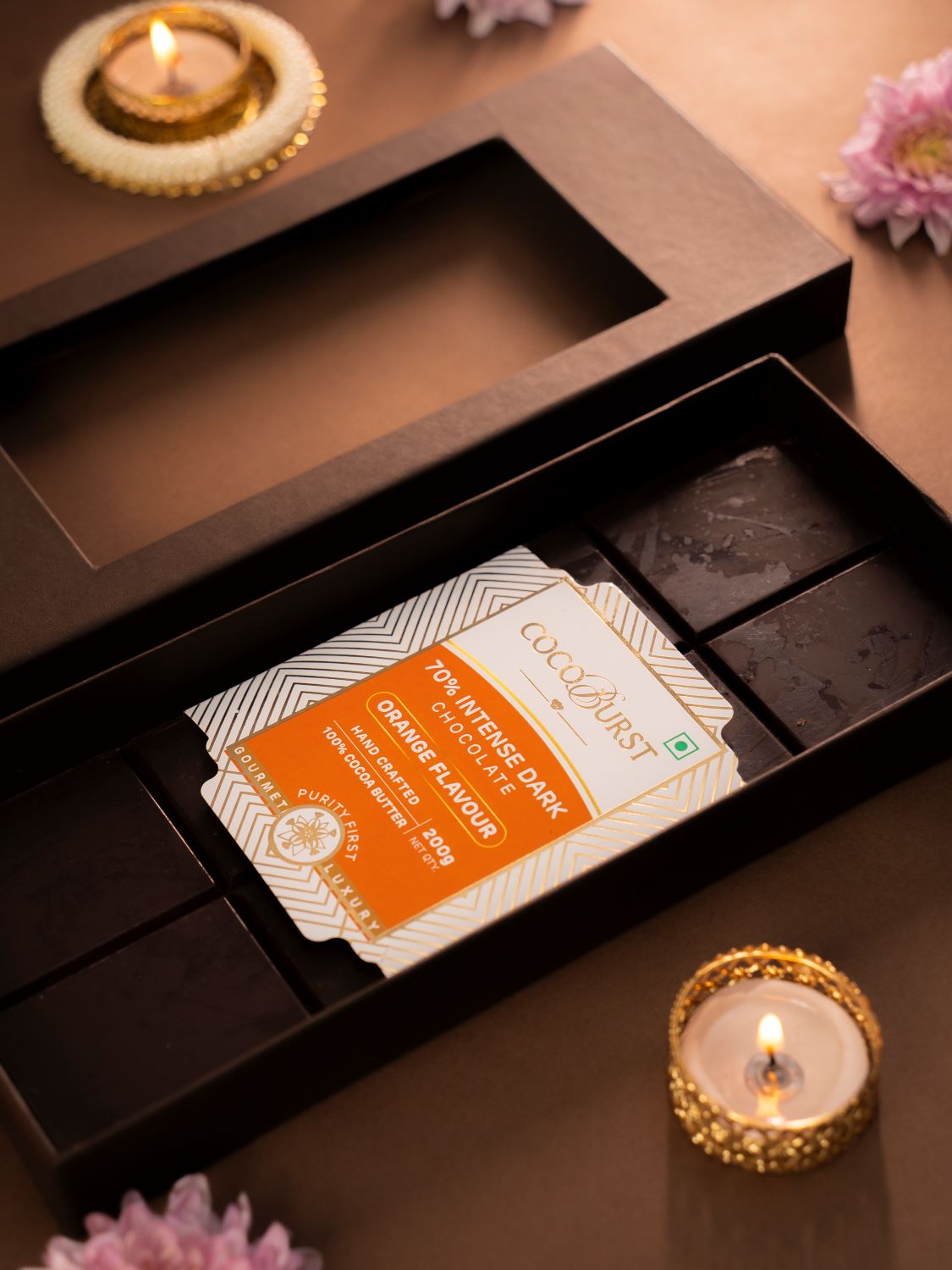 - Intense dark chocolate with A Hint of Orange 200 gm