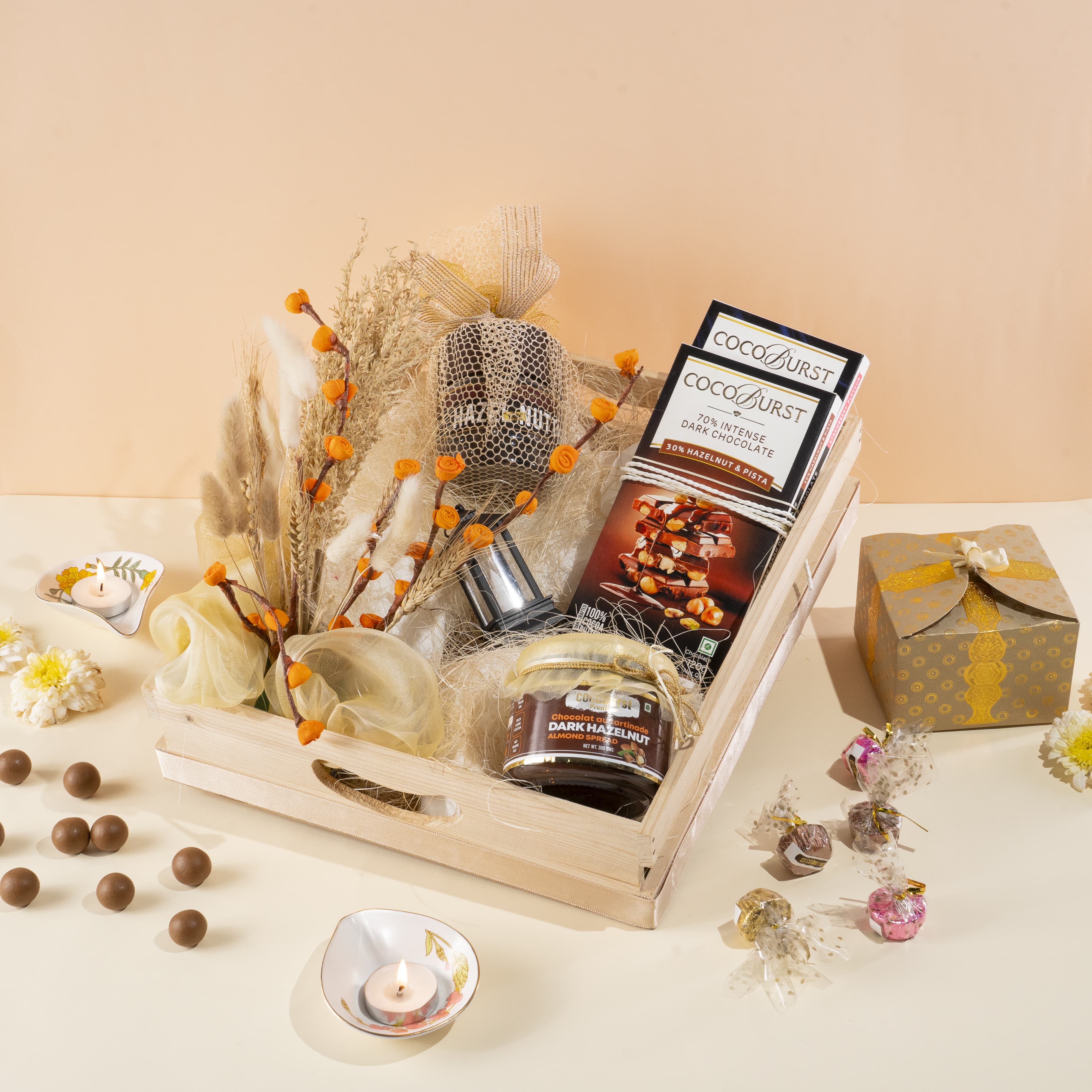 - This exquisite hamper combines the richness of premium chocolates with delectable spreads, making it the perfect festive gift for family, friends, or corporate partners.