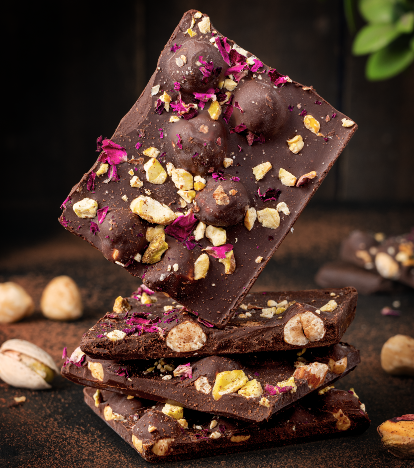 - 70% Intense Dark Chocolate 30% Hazelnut & Pista - 100g