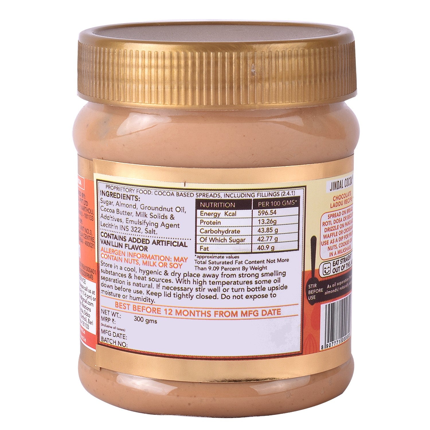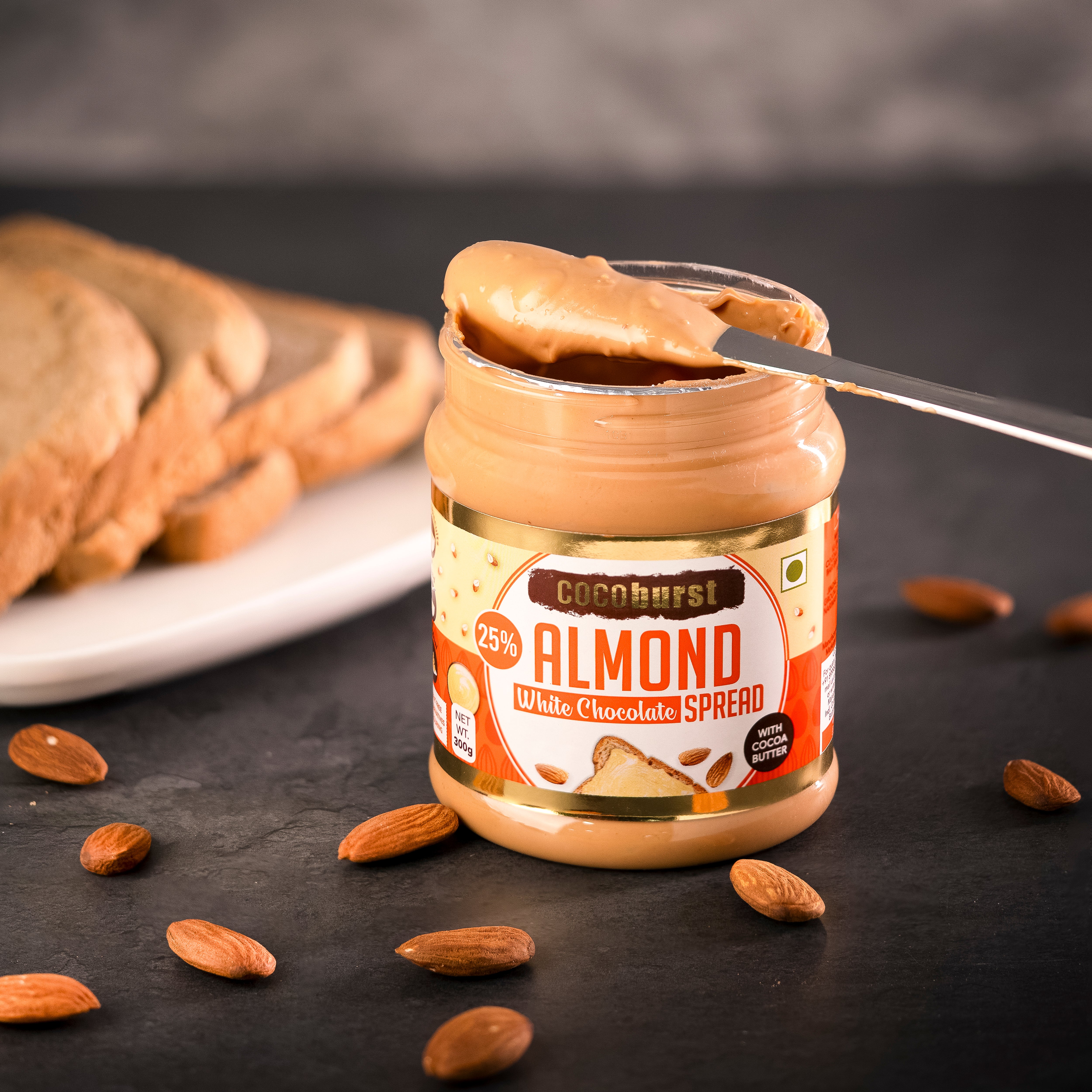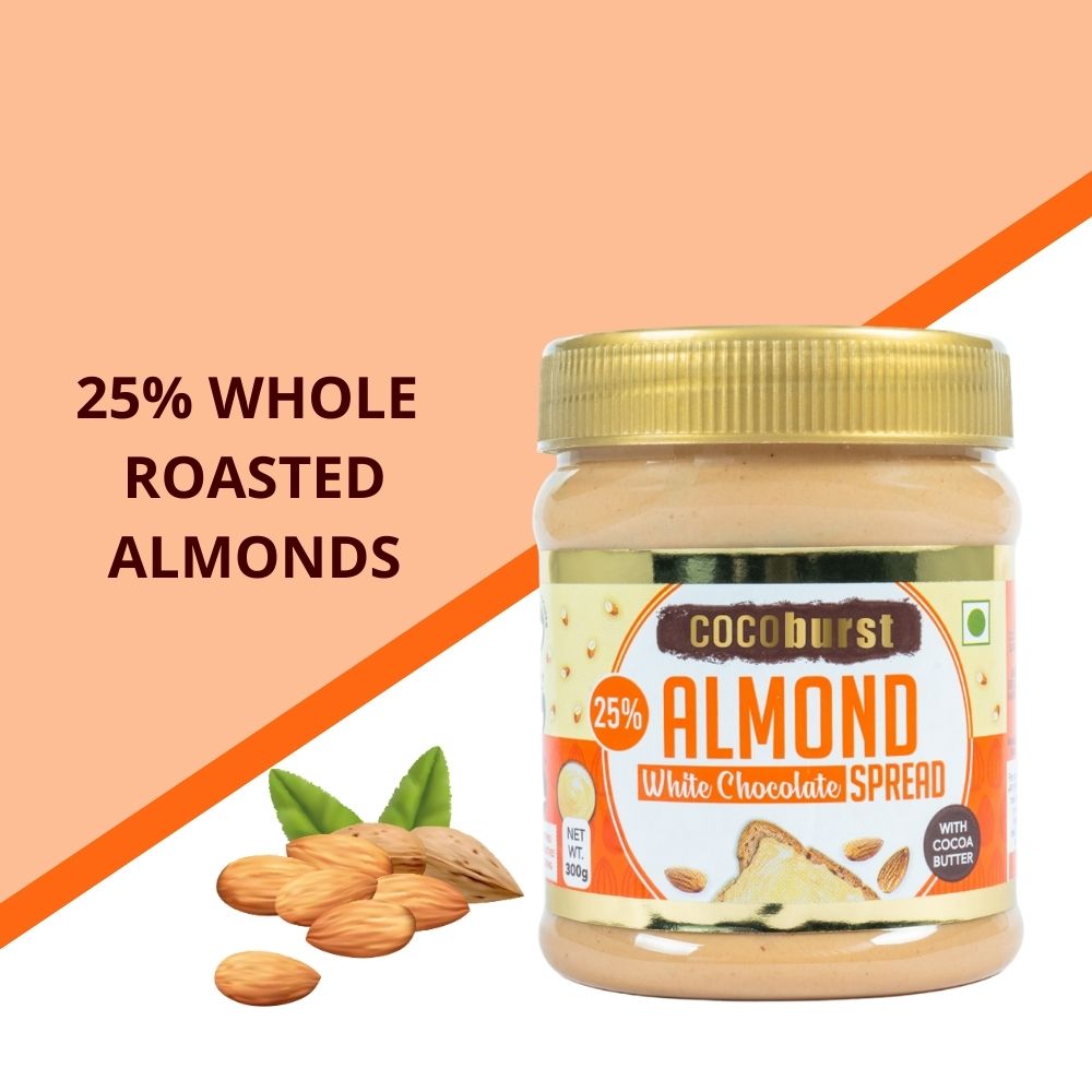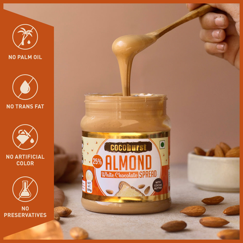 - A Unique, Decadent White Chocolate Spread With 25% Almonds, Milk & Cocoa Butter.